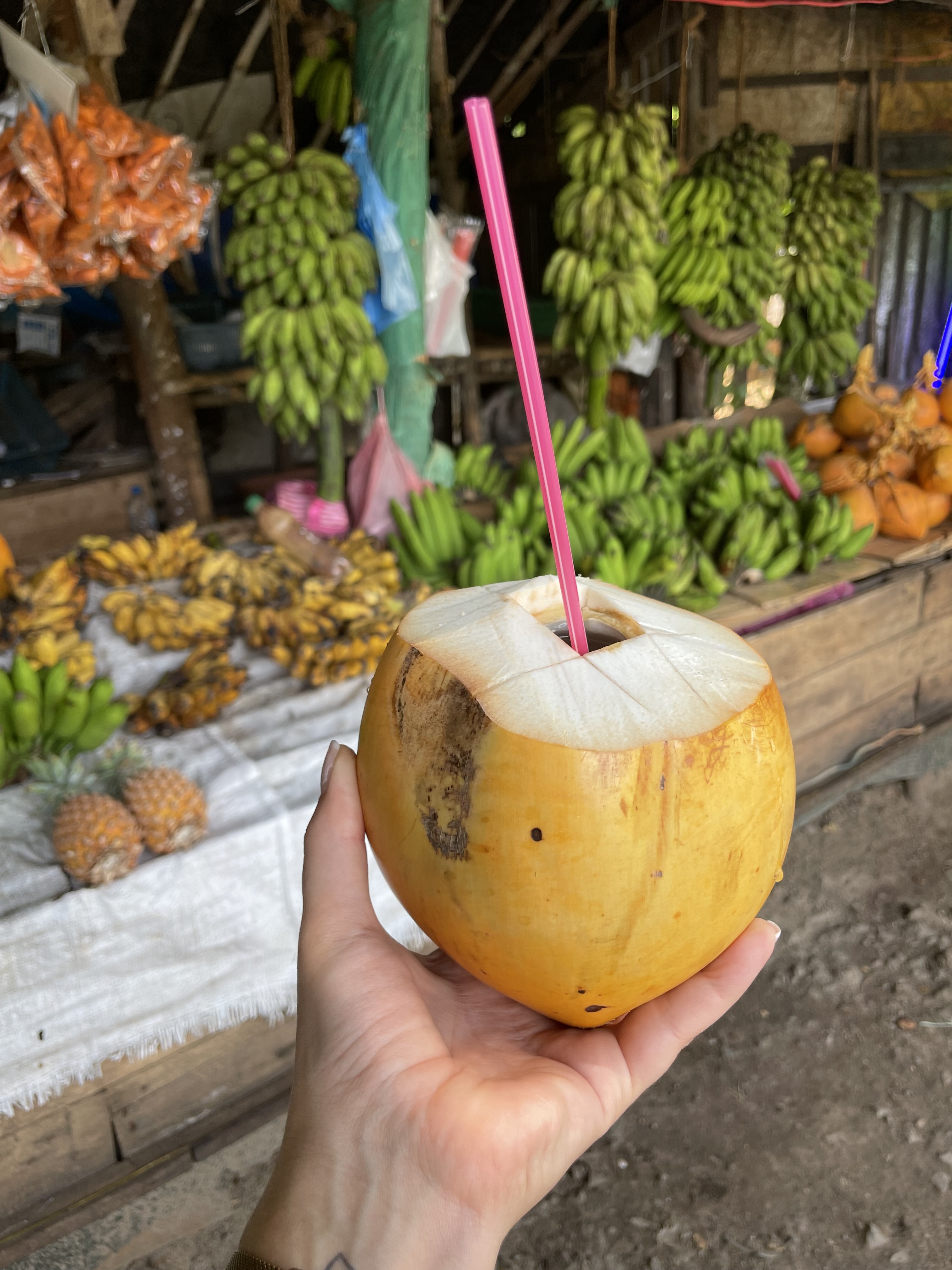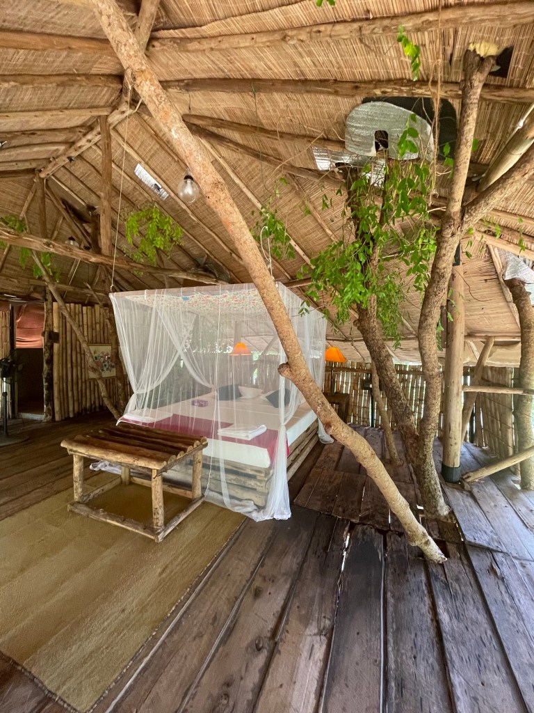 Auf Instagram habe ich total tolle Stories von einer Unterkunft in Nähe des Nationalparks gesehen und uns gleich zwei Nächte dort gesichert. Schlafen mitten im Dschungel unter dem freien Sternenhimmel mit Vogelgezwitscher und anderen Geräuschen der Natur – so habe ich mir das vorgestellt! Tja, die Realität sah ein wenig anderes aus: das Baumhaushotel war ein wenig runter gekommen seit Covid, das Wetter wurde plötzlich feuchtfröhlich und unser Baumhaus hatte kein fließendes Wasser und keine Toilettenspülung! Das Moskitonetz war durchlöchert, daher teilte man sich das Bett mit einigen Krabbeltierchen, im Nachttisch lebten irgendwelche nachtaktiven Riesenkäfer und die Affen, die über unser Dach sprangen, stellten sich als Ratten und Fledermäuse heraus! Für uns was klar, hier bleiben wir keine zwei Nächte!