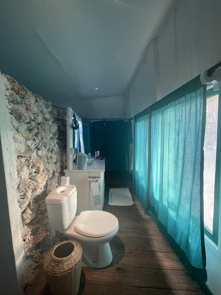 Ich liebe es einfach gleich in der Früh das türkise Meer zwischen meterhohen Palmen zu sehen und den feinpudrigen Sand unter meinen Füßen zu spüren. Da Bub jedoch war entsetzt die nächsten Nächte ohne Klimaanlage in unserem ECO – Beachbungalow zu verbringen.