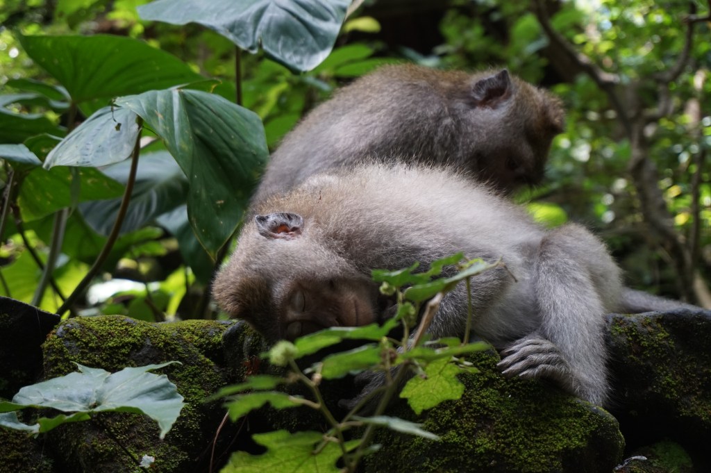 Wir besuchten den Monkey Forest in Ubud, eine Parkanlage dreier Tempeln mit dem Dschungel vereint, welcher als Zuhause verschiedener Affenarten dient. Da die Affen den Besuch der Menschen gewöhnt sind gilt es ein paar wichtige Verhaltensregeln einzuhalten wie zB Abstand von Babyaffen und den Muttertieren zu halten, füttern nur mit den dafür zur Verfügung gestellten Bananen im Park, kein Plastik mitbringen und Wertgegenstände wie Kameras und Sonnenbrillen gut verstauen denn die frechen Kerlchen sind wahre Meisterdiebe 🙊.