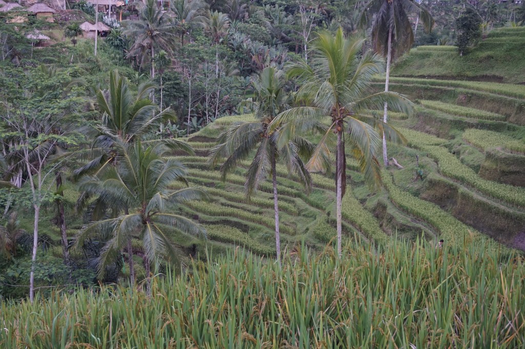 Auch die fotogenen Tegalalang – Reisterrassen haben wir besucht. Hier gilt natürlich auch früh zu kommen, da dies ein beliebter Tourispot für schöne Erinnerungsfotos ist. Zusätzlich zum Eintrittsgeld ist ab und zu von Terrasse zu Terrasse ein Checkpoint aufgebaut wo man bezahlen sollte um die Wege durch die weiteren Reisterrassen zu nutzen. Daher empfehlen wir etwas Bargeld dabei zu haben. 🌾